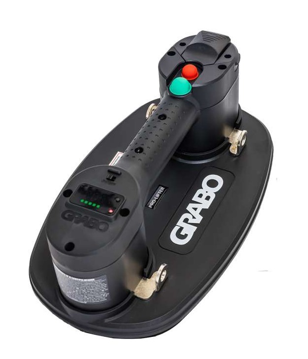 Ventosa elettrica manuale Grabo Pro dotata di schermo LCD per il controllo della pressione per sollevare, spostare e posizionare sia superfici lisce come marmo, vetro, legno, cartongesso che superfici ruvide in modo rapido e sicuro. La ventosa Grabo Pro ha una forza di sollevamento fino a 170 kg (a seconda del supporto), di grande aiuto per la posa di grandi piastrelle o per il trasporto di vetri, lastre di marmo. La batteria ha un’autonomia di funzionamento (in presa) fino a 1,5 ore e si ricarica in 2 ore.